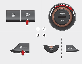 Главная > Особенности автомобиля > Функция устранения обледенения и запотевания лобового стекла > Устранение обледенения внешней стороны лобового стекла с помощью системы климат-контроля с автоматическим управлением