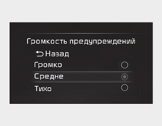 Если изменить громкость предупреждения, громкость предупреждения других функций помощи водителю также может измениться.
