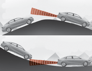Система контроля «мертвых» зон может работать некорректно при движении на уклоне. Функция может не обнаружить автомобиль на соседней полосе или неправильно обнаружить землю или здание.