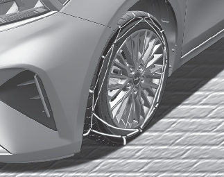 Управляя автомобилем, не делайте полный поворот (поворот рулевого колеса полностью в одну сторону) даже при надлежащей установке цепи. (Во время полного поворота скорость автомобиля должна быть ниже 10км/ч.)