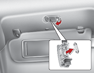 Замена лампы подсветки зеркала (накаливания) в солнцезащитном козырьке