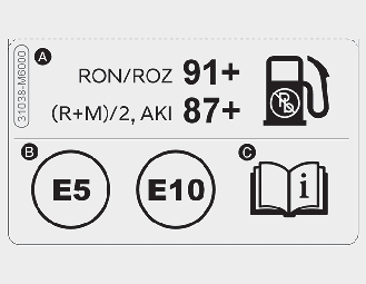 Этикетка с информацией о топливе размещена на крышке заливной горловины топливного бака.