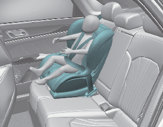يتيح نظام تثبيت الأطفال المتجه للخلف التثبيت مع وجود سطح المقعد قبالة ظهر الطفل. ويعمل نظام أحزمة التثبيت على تثبيت الطفل في مكانه، وفي حال وقوع حادث، يعمل على تثبيت الطفل في مكانه في أنظمة تثبيت الطفل ويحد من الضغط الواقع على العنق والحبل الشوكي الضعيف.