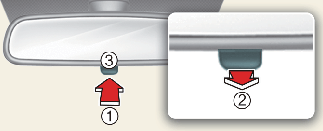 اسحب ذراع تحديد النهار/الليل (3)تجاهك (٢) لتقليل الوهج الصادر من المصابيح الأمامية للسيارات من خلفك أثناء القيادة ليلاً.