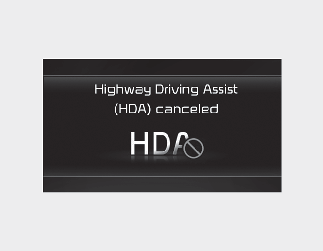 如果在握好方向盤的警告後駕駛仍然沒有將手放在方向盤上,則會顯示「已取消高速公路駕駛輔助 (HDA)」警告訊息。