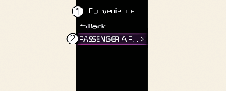Когато автомобилът е включен, докоснете Настройки → Удобство → ВЪЗДУШНА ВЪЗГЛАВНИЦА НА ПЪТНИКА на арматурното табло или Настройки → Автомобил → Удобство → ВЪЗДУШНА ВЪЗГЛАВНИЦА НА ПЪТНИКА на екрана на инфотейнмънт системата.