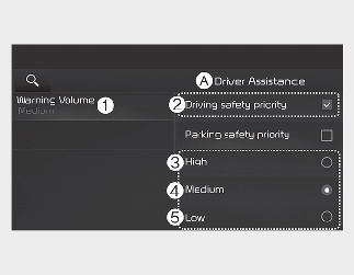 Si vous changez le volume de l'avertissement, celui des autres systèmes d'aide à la conduite peut changer.