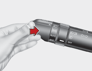 För att slå på helljuset trycker du spaken från dig när strålkastarna är på. Dra den åt dig för halvljus.