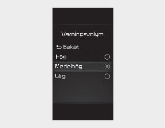 Om du ändrar varningsvolymen kan varningsvolymen ändras även för andra förarassistanssystem.