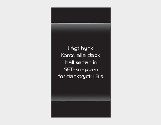 Om du inte har möjlighet att besöka en närliggande verkstad ska du stanna bilen på en trafiksäker plats, kontrollera alla däck och gå igenom inställningsproceduren för TPMS. Om du inte har möjlighet att justera däcktrycket använder du verktygen för att reparera däcket eller byta till reservhjulet och därefter kontaktar en professionell verkstad.