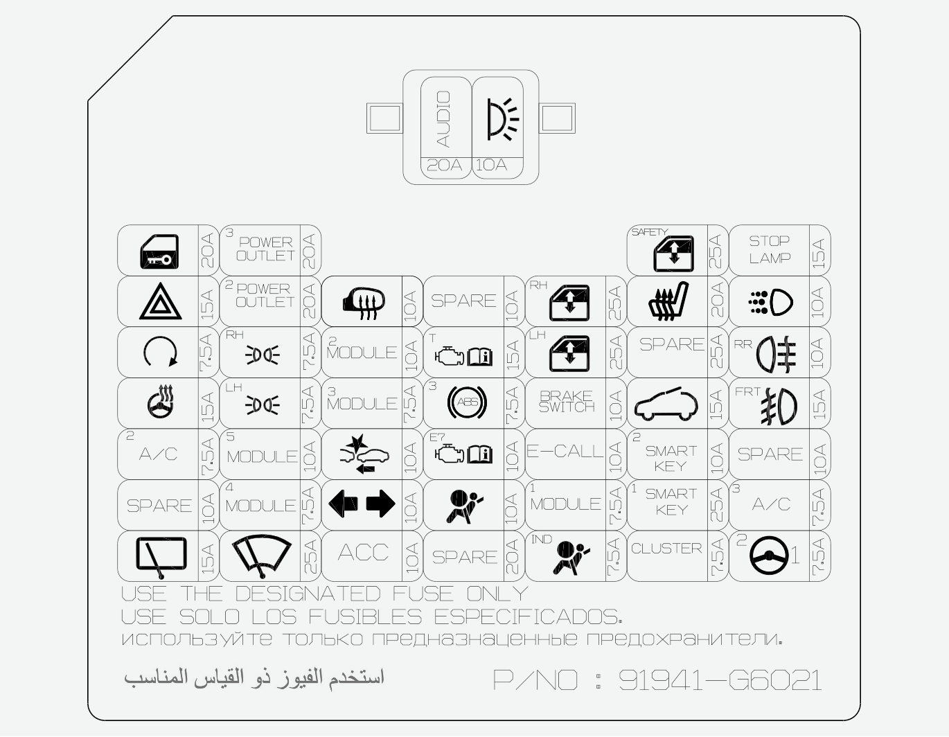 I dosan med säkringar/reläer finns en etikett där säkringarnas/reläernas märkning framgår.