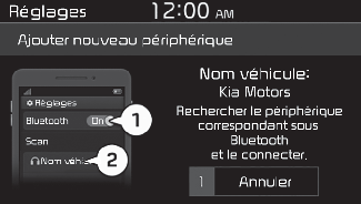 L'image de l'écran dans ce manuel est un exemple. Vérifiez sur l'écran de votre système le nom exact du véhicule et le nom du dispositif Bluetooth.