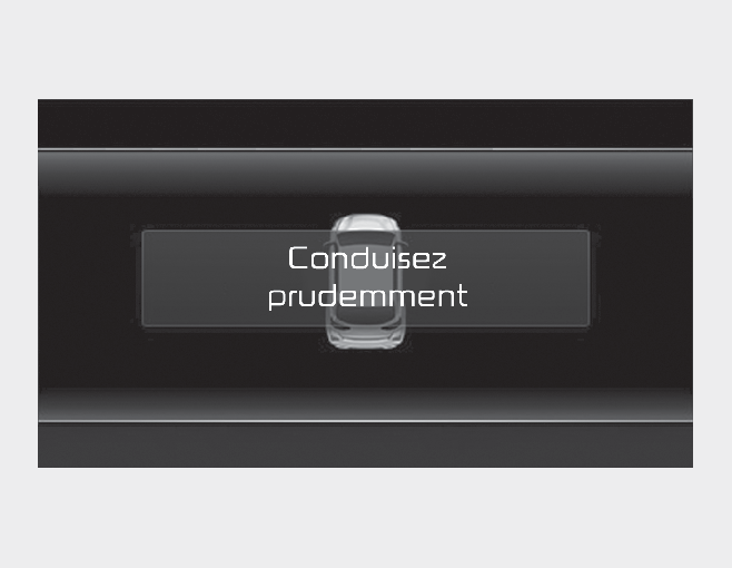 • Lorsque le véhicule est immobilisé à la suite d'un freinage d'urgence, le message d'avertissement ‘Drive carefully (Conduisez prudemment)’ apparaît dans le combiné d’instruments.