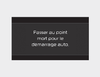Lorsque le levier de changement de vitesses n'est pas placé en position N (point mort), la fenêtre contextuelle suivante s'affiche sur le combiné d'instruments.