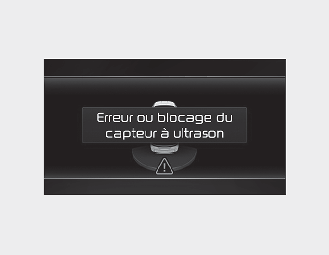 Le message d’alerte « Parking sensor or blockage » (erreur ou blocage du capteur de stationnement) apparaît sur le tableau de bord.
