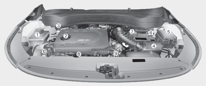 * El compartimento real del motor del vehículo puede diferir de la ilustración.