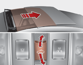 Pulse el interruptor del techo solar hacia delante o hacia atrás hasta la primera posición de retención, el cristal del techo solar se mueve hasta que se suelta el interruptor.