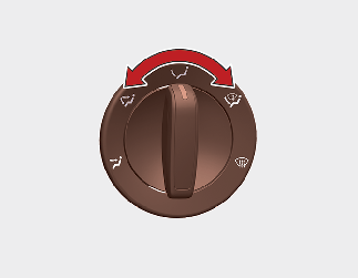 Para cambiar la temperatura del aire en el compartimento de los pasajeros, gire el mando a la derecha para calentar el aire y hacia la izquierda para enfriarlo.