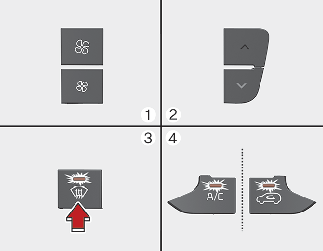 Si el aire acondicionado y la posición de aire (fresco) del exterior no se seleccionan automáticamente, pulse el botón correspondiente de forma manual.