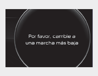 El conductor puede hacer funcionar el vehículo sobre una superficie llana cuando el cambio está en primera o segunda, pero aparece el siguiente mensaje de advertencia si el conductor intenta hacerlo cuando el cambio está engranado por encima de tercera.