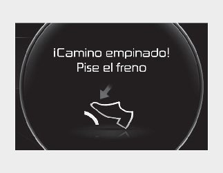 Si mantiene el vehículo en una cuesta accionando el pedal del acelerador o avanzando lentamente con el pedal del freno desacoplado, el embrague y la transmisión se podrían sobrecalentar lo que podría provocar daños en los mismos. En este momento, aparecerá un mensaje de advertencia en la pantalla LCD.