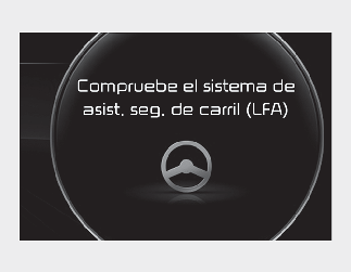 Si el conductor aún no tiene las manos en el volante después del aviso de sin manos, se mostrará el mensaje de advertencia y se cancelará automáticamente la asistencia de seguimiento del carril.