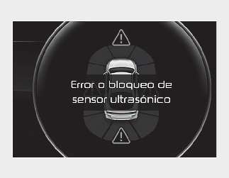 El indicador correspondiente se encenderá en el tablero o en la pantalla del sistema de infoentretenimiento siempre que el sensor ultrasónico detecte una persona, un animal o un objeto dentro de su margen de detección. También se emitirá un sonido de advertencia.