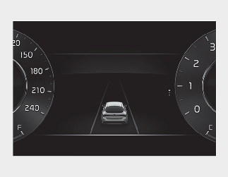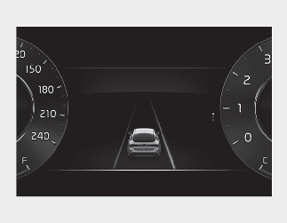 Cuando se detectan las marcas del carril (o los bordes de la calzada), las líneas de carril del tablero cambiarán de gris a blanco y el testigo verde (