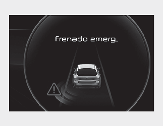 Cuando el vehículo se detiene debido a una frenada de emergencia, el mensaje de advertencia "Conduzca con precaución" aparece en el tablero.