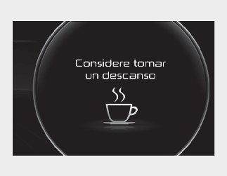 El aviso de atención del conductor puede sugerir un descanso según el patrón de conducción o los hábitos del conductor, aunque el conductor no sienta fatiga.