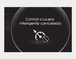Si el control de crucero inteligente se cancela de forma temporal automáticamente, se mostrará un mensaje de advertencia en el tablero y se emitirá una advertencia acústica para avisar al conductor.