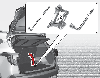 El gato, la palanca del gato y la llave para las tuercas de las ruedas se encuentran en el maletero.