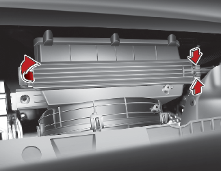 Desmonte la cubierta del filtro de aire de control del climatizador tirando del lado derecho de la cubierta.