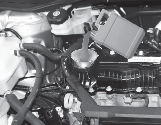 Utilice un embudo para evitar que el aceite se derrame por los componentes del motor. Utilice solo el aceite de motor especificado. (Consulte Más detalles).