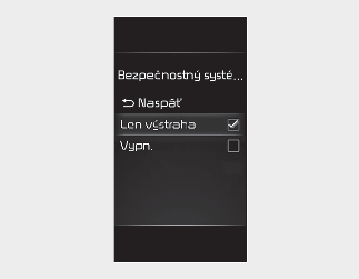 Ak vyberiete možnosť „Off“ (Vyp.), vodič by si mal vždy uvedomovať okolie a jazdiť bezpečne.