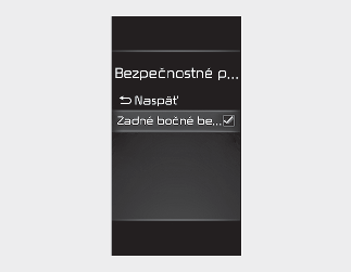 Keď je spínač zapaľovania alebo tlačidlo ENGINE START/STOP (štart/vypnutie motora) v polohe ON (Zap.), vyberte možnosť „DriverAssistance → Parking Safety → Rear Cross-Traffic Safety“ (Bezpečnosť pri parkovaní / Bezpečnosť križujúcich sa vozidiel vzadu) z ponuky nastavení, aby sa zaplo upozornenie na križujúce sa vozidlá vzadu, a zrušte jej označenie, ak funkciu chcete vypnúť.