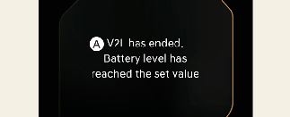 A: Zakończono V2L. Poziom baterii osiągnął ustawioną wartość