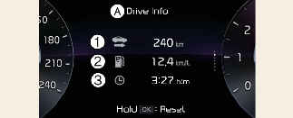 O ecrã de informações de condução é reposto quando a porta do condutor é aberta depois de desligar o veículo ou quando o veículo é ligado passados 3 minutos.