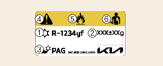 Pode descobrir qual o líquido refrigerante de ar condicionado aplicado ao seu veículo na etiqueta que se encontra no interior do compartimento do motor.