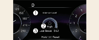 O nível de atenção do condutor é apresentado numa escala de 1 a 5. Quanto mais baixo é o nível, mais desatento é o condutor. O nível diminui quando o condutor não faz uma pausa durante um determinado período de tempo.