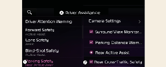 Com o motor a trabalhar, selecione "Driver Assistance (Assistência ao condutor) → Parking Safety (Segurança no estacionamento) → Rear Cross-Traffic Safety (Segurança de tráfego cruzado à retaguarda)" no menu Settings (Definições) para ativar a Segurança de tráfego cruzado à retaguarda e desmarque para desativar a função.