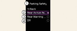 Com o veículo a trabalhar, selecione ou desmarque Driver Assistance (Assistência ao condutor) → Parking Safety (Segurança no estacionamento) no menu Settings (Definições) para definir se pretende ou não utilizar cada função.