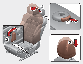 Press the headrest release button (3) while pulling the headrest up (4).