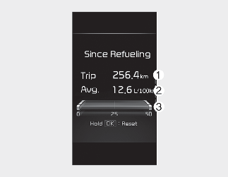 If you press "OK" button for more than 1 second after the Since Refueling is displayed, the information will be reset.