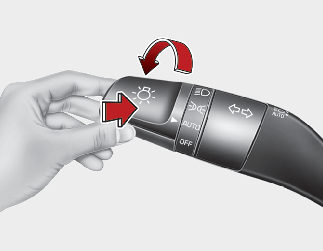 Place the headlamp switch in the AUTO position and push the headlamp switch towards the instrument cluster. The High Beam Assist (