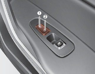 If the smart key is in the vehicle and any front door is opened, the doors will not lock even though the right portion (1, driver's door) or the front portion (1, passenger's door) of the central door lock switch is pressed.
