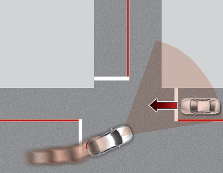 Junction Turning function will help avoid a collision with an oncoming vehicle in an adjacent lane when turning left at a crossroad with the turn signal on by applying emergency braking.