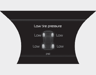 Do not drive on low pressure tires. Significantly low tire pressure can cause the tires to overheat and fail making the vehicle unstable resulting in increased braking distances and a loss of vehicle control.