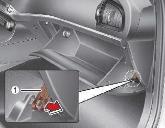 Remove the climate control air filter cover while pressing the lock on the left side of the cover.