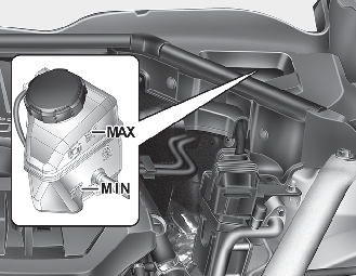 Check the fluid level in the reservoir periodically. The fluid level should be between MAX (Maximum) and MIN (Minimum) marks on the side of the reservoir.